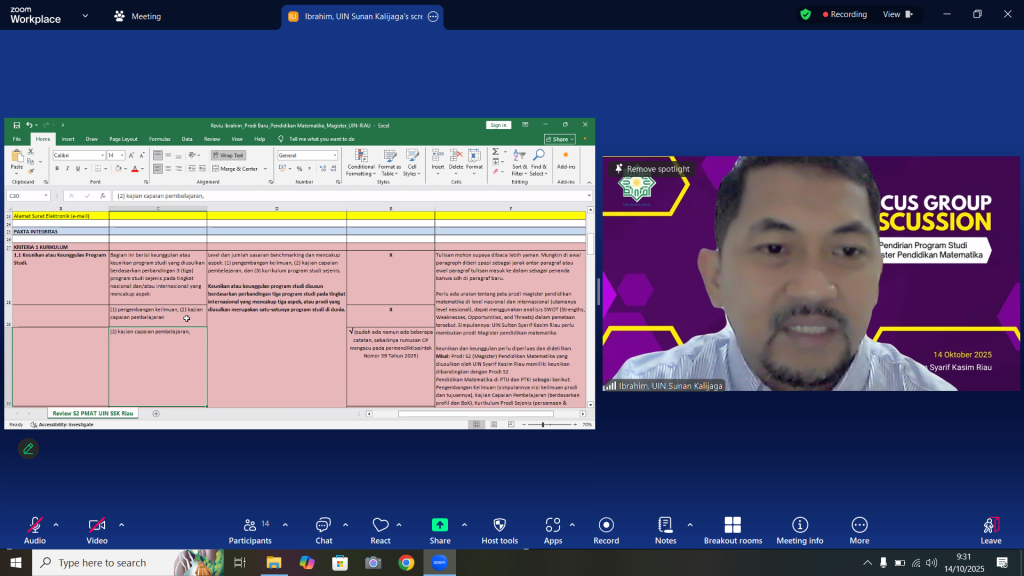 Acara yang berlangsung pada Selasa, 14 Oktober 2025, bertempat di UIN Suska Riau ini dilaksanakan secara hybrid, menggabungkan kehadiran langsung dan partisipasi melalui platform Zoom Meeting.